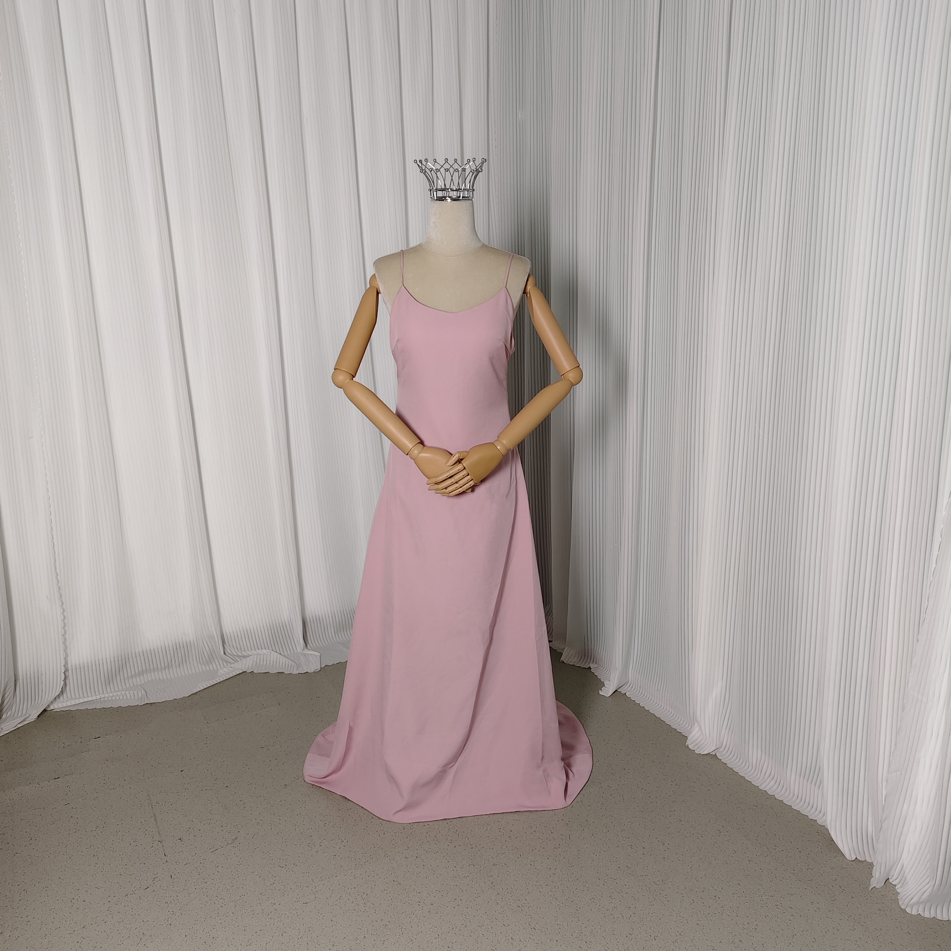 パーティードレス ピンク キャミソール 細見えシルエット クレープ生地 前撮り 二次会